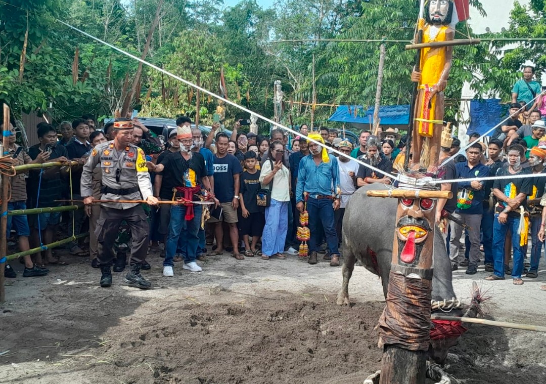 Dalam hal ini, Kata Hitler S. Pd, SD Kegiatan Adat upacara Ritual Tiwah hari ini sebanyak 8 [Delapan] orang yang telah meninggal di Hormati melalui Prosesi Adat Ritual Tiwah, Pihak Keluarga juga menyiapkan Hewan Yaitu : 5 [Lima] Ekor Kerbau dan 3 [Tiga] Ekor Babi. Kegiatan Adat Upacara Ritual Tiwah Tabuh [Puncak] di hadiri oleh Pihak Unsur Tingkat Tripika yaitu : Camat Kahayan Tengah, KAPOLSEK Kahayan Tengah, DANRAMIL 1011 / – 11 Kahayan Tengah dan Pihak seluruh Keluarga, dalam kesempatan itu juga Pihak Keluarga Besar Bapak Hitler, S.Pd, SD mempersilahkan Bapak KAPOLSEK Kahayan Tengah IPTU Rusman, S. Ikom untuk menombak Hewan Kurban Kerbau yang di Ikat di tiang Patung Sapundu sebagai bentuk Penghormatan dari pihak keluarga yang menyelenggarakan kegiatan tersebut dan di mulainya Acara Tabuh [Puncak] kegiatan adat Upacara Ritual Tiwah, Ungkapnya pada Hari Senin (10/11/2025) Pukul 09.30 Wib.